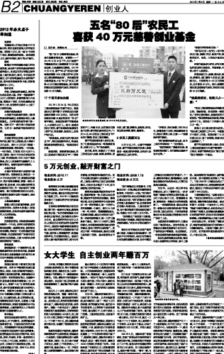 五名“80后”农民工喜获40万元慈善创业基金...