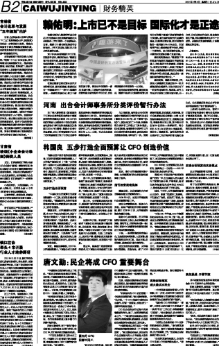 唐文勤:民企将成CFO重要舞台