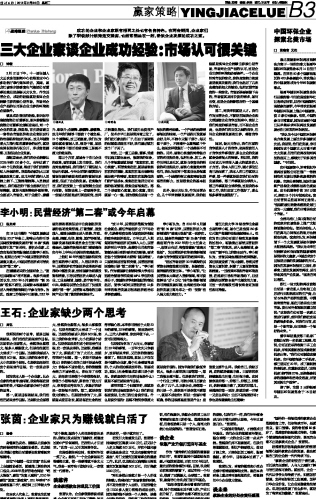 三大企业家谈企业成功经验:市场认可很关键...