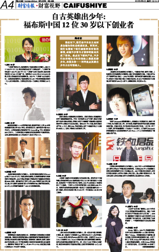 自古英雄出少年:福布斯中国12位30岁以下创业者...
