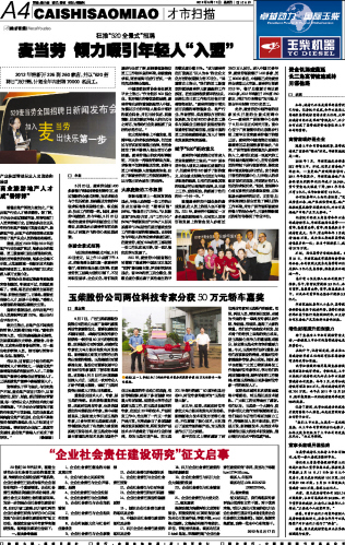 玉柴股份公司两位科技专家分获50万元轿车嘉奖...