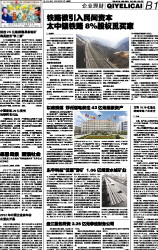 铁路欲引入民间资本 太中银铁路8%股权觅买家...