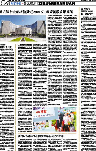 5月银行业新增信贷近8000亿 政策刺激效果显现...