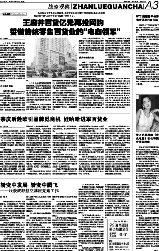 宗庆后赴欧引品牌觅商机 娃哈哈进军百货业...