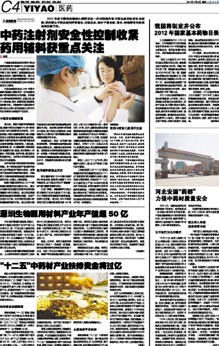 中药注射剂安全性控制收紧 药用辅料获重点关注...