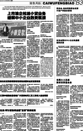 上市渝企抢滩小贷业务缓解中小企业融资瓶颈...