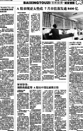 A股表现亚太垫底 7月市值蒸发逾8400亿...