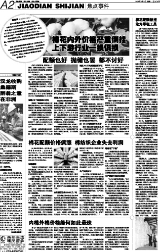 棉花内外价格严重倒挂 上下游行业一损俱损...