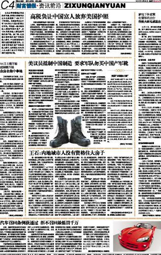 美议员抵制中国制造 要求军队勿买中国产军靴...