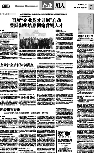 百度“企业英才计划”启动登陆温州培养网络营销...