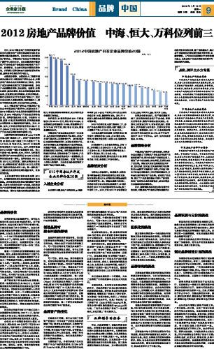 2012房地产品牌价值 中海、恒大、万科位列前三...