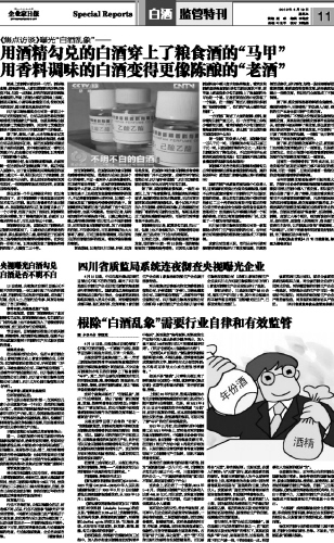 用酒精勾兑的白酒穿上了粮食酒的“马甲”用香料...