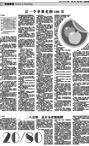 换句话说,这平时不被我们重视的80%,就是我们最大的价值源泉,只是我们一直忽略了,没有被开发出来。而且我们还使用了一个所谓的二八定律来对自己催眠,自己对自己的营销失误寻找借口。从这点上来看,这80%的顾客同样重要,甚至比那已经产生了80%利润的顾客更重要,因为他们的生命价值周期才是最长的,他们才是真正的价值和利润源泉。我们营销人需要做的就是让着80%的游离性顾客成为我们的忠实顾客,而不仅仅是维护那20%的所谓重点顾客。只有在这个时候,所谓的80%的利润产生于20%的顾客才是有意义的。