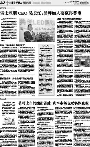 雷士照明CEO吴长江:品牌如人要赢得尊重...
