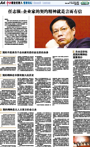 任志强:企业家的契约精神就是言而有信...