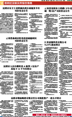 云南省曲靖市阳光花园商铺两间司法拍卖公告...