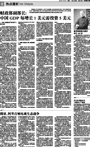 财政部副部长:中国GDP每增长1美元需投资5美元...