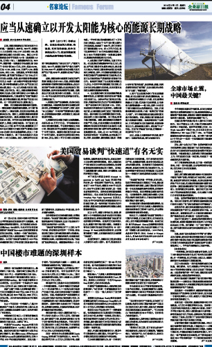 应当从速确立以开发太阳能为核心的能源长期战略...