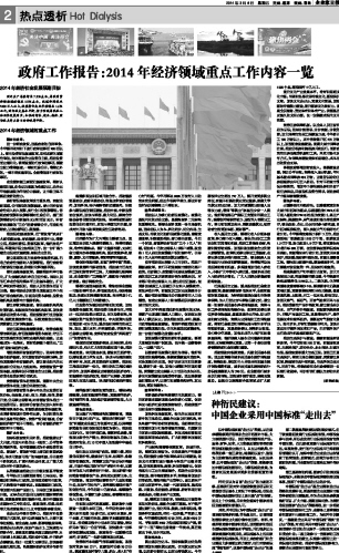 政府工作报告:2014年经济领域重点工作内容一览...