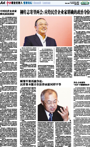柳传志寄望两会:应给民营企业家明确的政治身份...