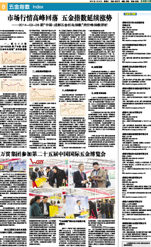 市场行情高峰回落 五金指数延续涨势...