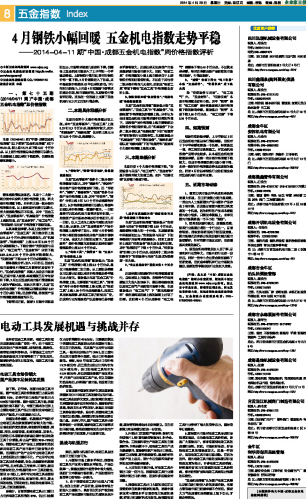 4月钢铁小幅回暖 五金机电指数走势平稳...
