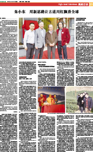朱小东:为了拓展产能、满足市场对乌蒙韵红茶的巨大需求,继承自先秦以来的“茶马古道——五尺道”历史文化,促进筠连茶产业发展,目前乌蒙韵正在建设具有产业生产基地、科技示范基地、科技运用推广基地、川红故里——五尺道茶文化旅游开发基地等四大功能为一体的红茶精深加工基地。建成后,将形成年加工高品质富硒筠连红茶2400吨的生产能力,实现年产值5亿元,年平均利润总额将达到9200万元,辐射超过15万亩的茶叶种植基地建设规模,带动超过7万的茶农共同致富,实现巨大的经济效益和社会效益。
