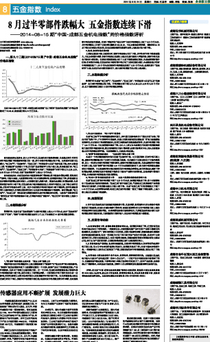 8月过半零部件跌幅大 五金指数连续下滑...