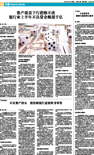 资产质量下行趋势不改 银行业上半年不良贷余额...