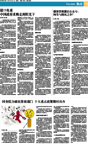 国务院力破民资玻璃门 十大重点政策限时出台...