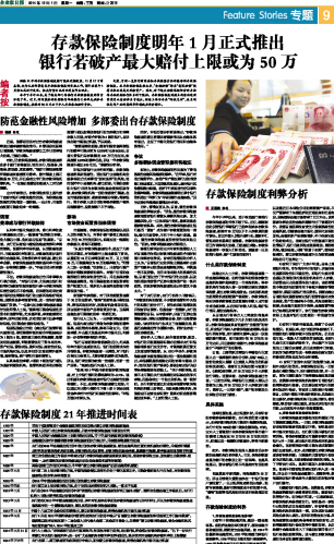 存款保险制度明年1月正式推出 银行若破产最大赔...