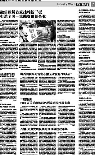 融信租赁首家挂牌新三板打造全国一流融资租赁企...