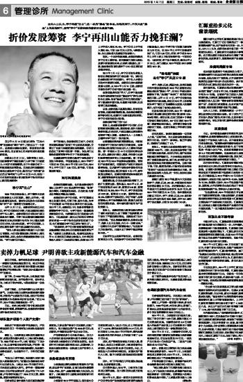 卖掉力帆足球 尹明善欲主攻新能源汽车和汽车金...