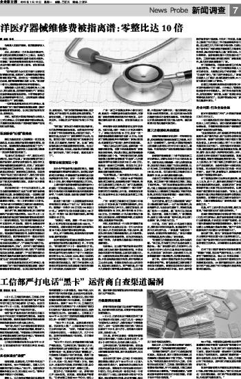 洋医疗器械维修费被指离谱:零整比达10倍...