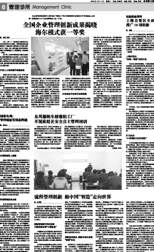 全国企业管理创新成果揭晓 海尔模式获一等奖...