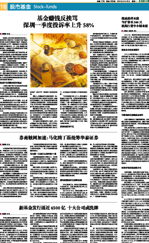 基金赚钱反挨骂 深圳一季度投诉率上升58%...