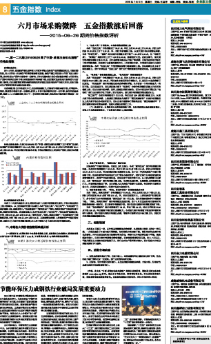 六月市场采购微降 五金指数涨后回落...