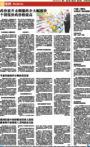 药价放开未刺激药企大幅涨价 个别低价药价格提...