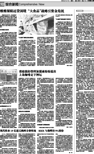 维维深陷还贷困境 “大食品”战略引资金危机...