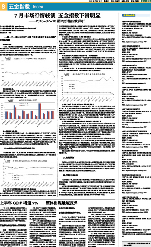 7月市场行情较淡 五金指数下滑明显...