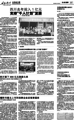 四川去年投入1亿元支持“千人计划”发展...