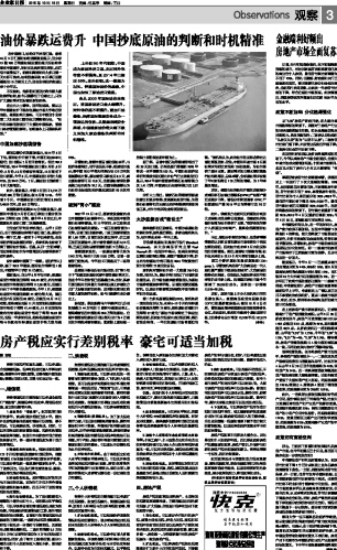 房产税应实行差别税率 豪宅可适当加税...