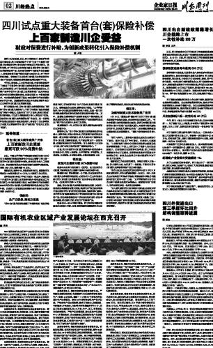 四川试点重大装备首台(套)保险补偿 上百家制造...