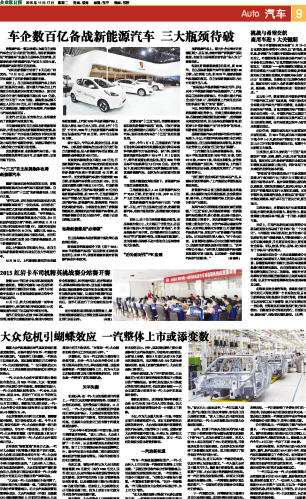 车企数百亿备战新能源汽车 三大瓶颈待破...