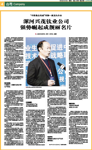漯河兴茂钛业公司强势崛起成靓丽名片...