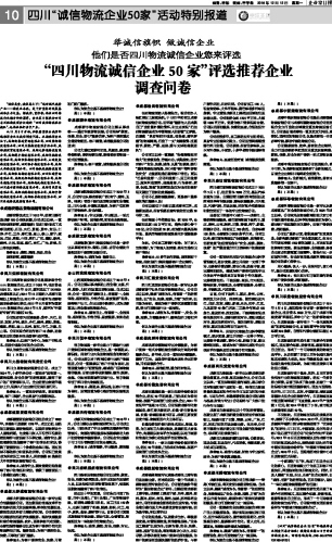 “四川物流诚信企业50家”评选推荐企业调查问卷...