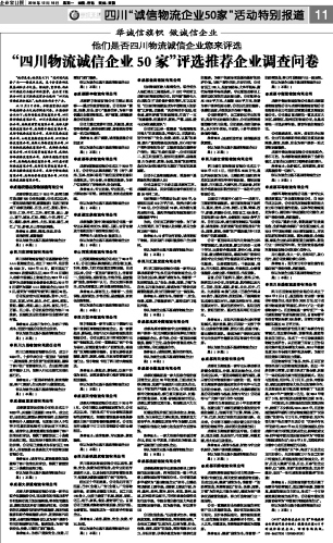 “四川物流诚信企业50家”评选推荐企业调查问卷...