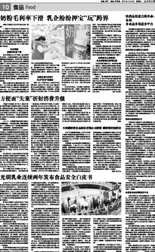 奶粉毛利率下滑 乳企纷纷押宝“玩”跨界...