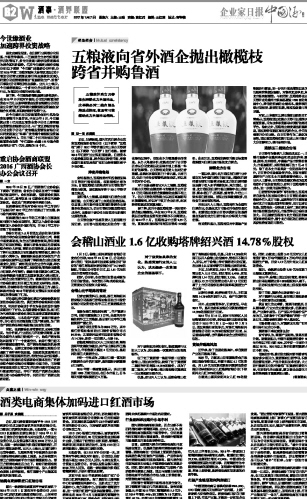 五粮液向省外酒企抛出橄榄枝 跨省并购鲁酒...