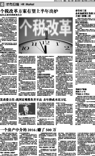 个税改革方案有望上半年出炉
